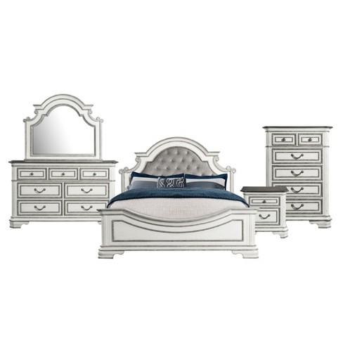 While white bedroom sets look incredible with bold colors they can also create a relaxing retreat when combined with pale paint and a white bedspread. White antique white king bedroom set. A white king bedroom set pairs well with just about any decor making personalization a breeze.